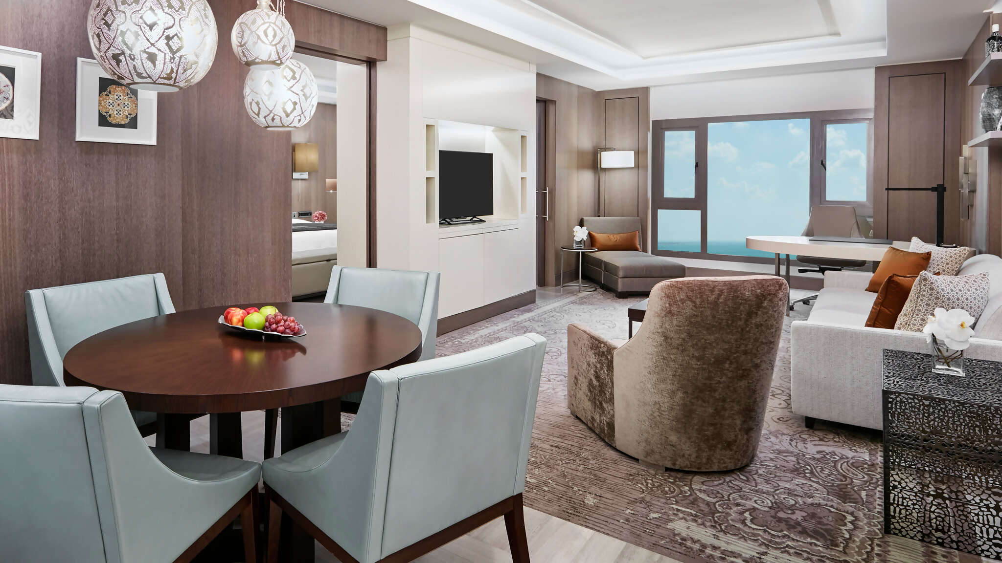 Our furnished rooms are designed as luxurious, modern, comfortable, and fresh with an Arabic twist. Rooms feature 40-inch LED TV, smart connectivity, complimentary Wi-Fi internet connection, sleek spa-like bathrooms, and premium amenities.